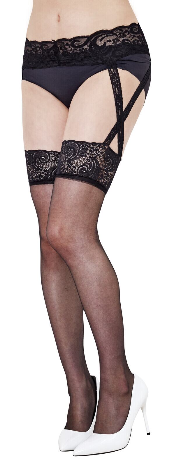 ヒップや太ももに圧迫感無く履けるレースガーターストッキング。